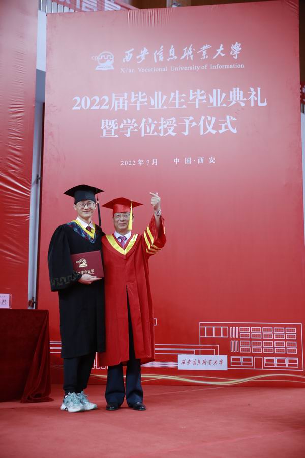 他寄语全体毕业生:一是要不负时代,勇于担当。同学们身在中华民族伟大复兴的大好时代,应该珍惜这个伟大时代,要不断学习前沿科学技术,适应国家2035和2050愿景发展,成为高层次技术技能人才,争做堪当民族复兴重任的时代新人!二是要不负使命,追求卓越。同学们身在世界百年大变局加速演进的深刻变革中,面对新情况新问题要不负使命,要有追求卓越的胸怀和格局,立足岗位,脚踏实地,在坚持坚定和精益求精中斩露头脚,努力成为信息产业大国工匠能工巧匠;三是要不负未来,砥砺前行。同学们身在现代信息技术日新月异、不断迭代更新加速发展关键时期,要及时掌握新技术、新知识、新工艺、新规范,无论身处顺境还是逆境,都要奋力拼搏,砥砺前行,努力成为建设社会主义现代化强国的中流砥柱。他嘱托广大校友无论在哪里,都别忘了秦岭山神禾塬,西信大,常回家看看。他倾情献歌《小白杨》与毕业生不舍告别,表达了美好祝福。祝愿同学们生活美满,前程似锦。