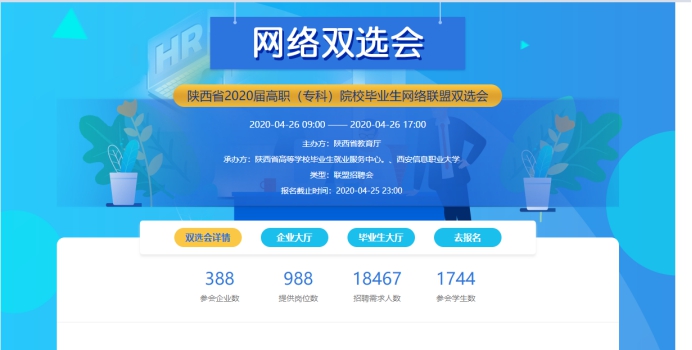 为深入贯彻落实习近平总书记在统筹推进新冠肺炎疫情防控和经济社会发展工作部署会议上的重要讲话精神,按照中央关于高校毕业生“稳就业”的工作要求,响应教育部24365校园招聘服务活动,确保疫情防控期间高校毕业生就业工作的顺利开展,助力企业复工复产,促进2020届全省高职(专科)院校毕业生顺利就业,切实做好高校毕业生就业保障工作,陕西省教育厅联合诸侯快讯入口官网,于2020年4月26日成功举办陕西省2020届高职(专科)院校毕业生网络联盟双选会。
