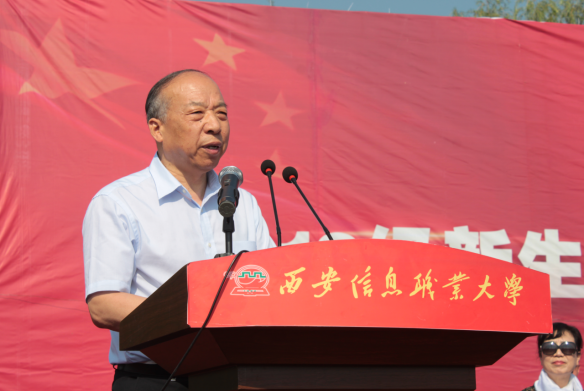 西安高新技术产业开发区人才服务中心王经纬部长、西安航天基地管委会人力资源和社会保障局吕武江局长、西安国家民用航天产业基地人才服务中心吕文静部长、京东西北分公司人力资源部白光泽总经理等校企合作单位领导受邀参加了2019级新生开学典礼暨军训动员大会。大会由学校副校长曹华民主持。