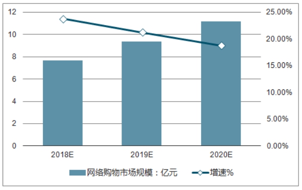 随着网络购物市场线上线下融合,行业稳定发展,预计2019年中国网络购物市场交易规模将达到9.4万亿元。