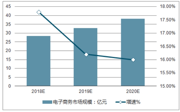 随着电商商务行业的逐步完善,预计2019年中国电子商务交易规模将超30万亿元,同比增长为16.2%。