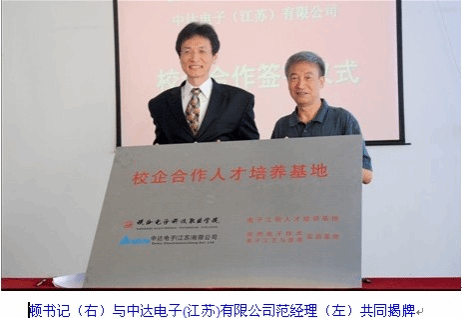 2012年5月20日上午9时,陕西电子科技职业学院与中达电子(江苏)有限公司校企合作签字及实训基地揭牌仪式在学院主教学楼309会议室隆重举行。出席仪式的有党委书记顿长印及有关部门领导,中达电子(江苏)有限公司人力资源部资深经理范朝钦、中达电子(江苏)有限公司人力资源部课长张鹏。