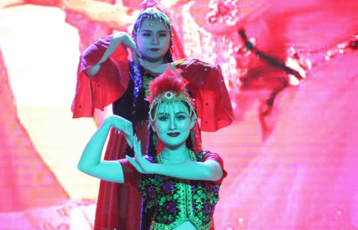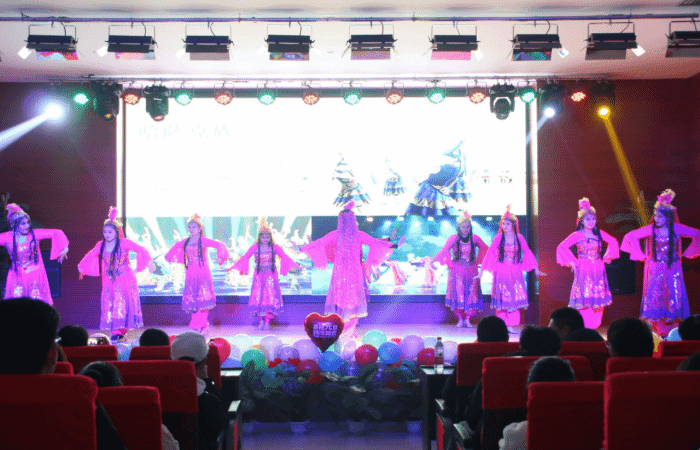 以弘扬中华传统文化为主题的舞蹈《礼仪之邦》拉开了整场晚会的序幕,新疆籍双语学生表演的舞蹈《美丽新疆》和《五彩民族风》将整场晚会推向了高潮,她们优美的舞姿和具有民族特色的服饰吸引了全场观众的目光,并现场纷发带来的新疆特色小吃,这一场视觉和味觉的盛宴让人沉醉不已。