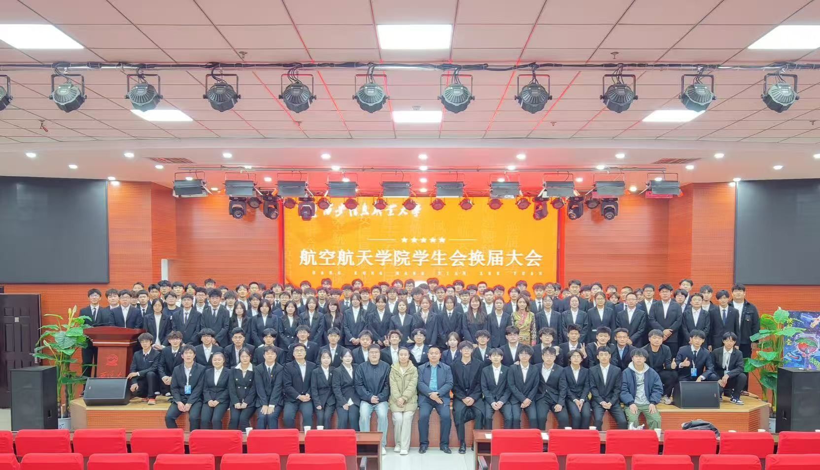 本次换届大会的圆满召开,标志着我院学生工作开启了崭新的篇章。新一届学生会接过的是旗帜,更是服务同学、助力成长的责任与信任。站在新的起点,期待全体学生骨干牢记服务初心,精诚协作、务实担当,将组织的活力转化为服务同学的具体行动,在引领青年思想、繁荣校园文化、促进学风建设的实践中锤炼本领,与全院学子一道,共同谱写航空航天学院学生发展的精彩篇章。