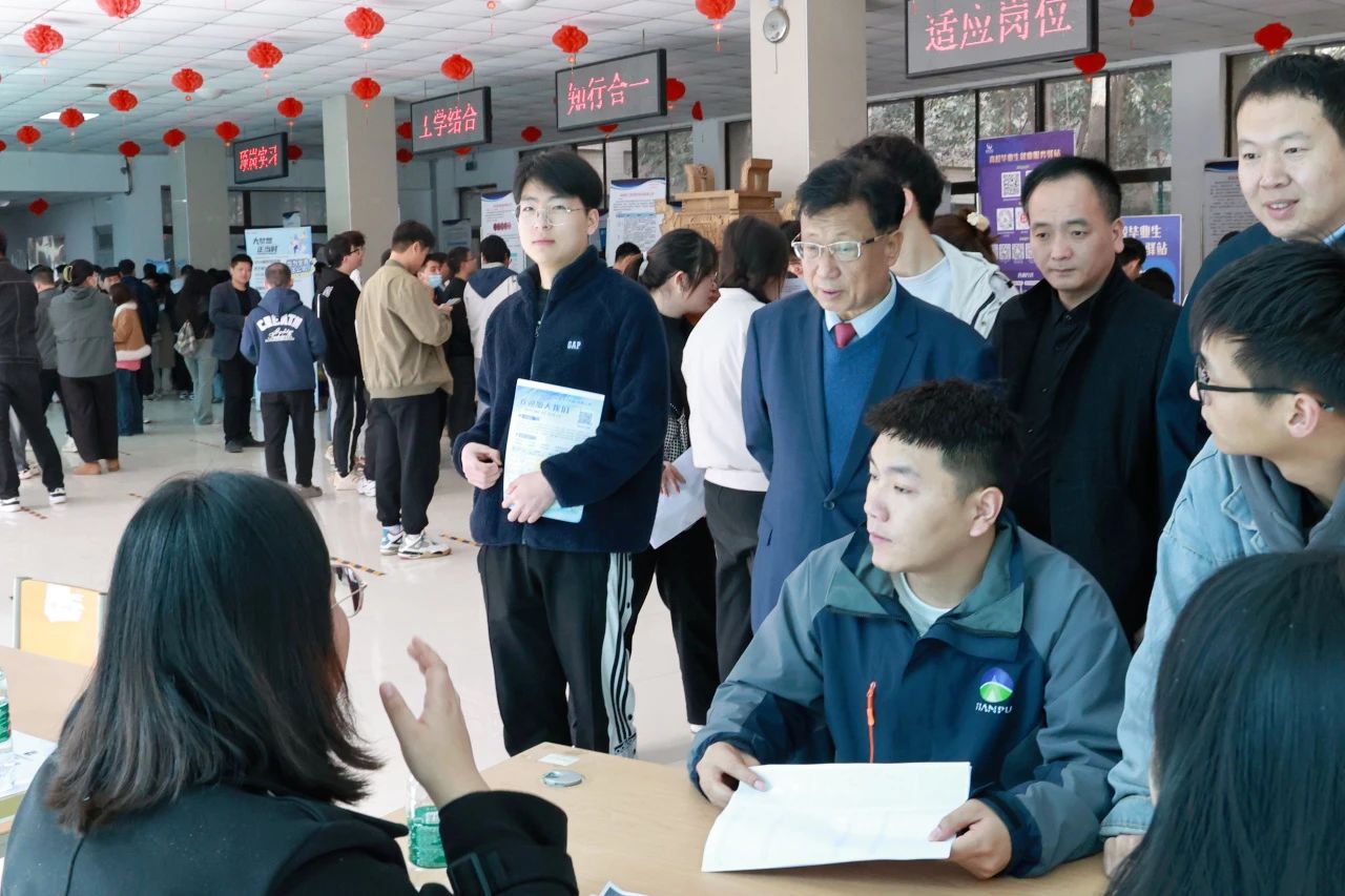 陕西省学生就业与留学服务中心部长陈靖、学校理事长、校长张明以及党委书记陈华一行亲临招聘会现场,与众多用人单位及毕业生进行亲切交谈,详细了解用人单位人才需求状况及毕业生求职情况。