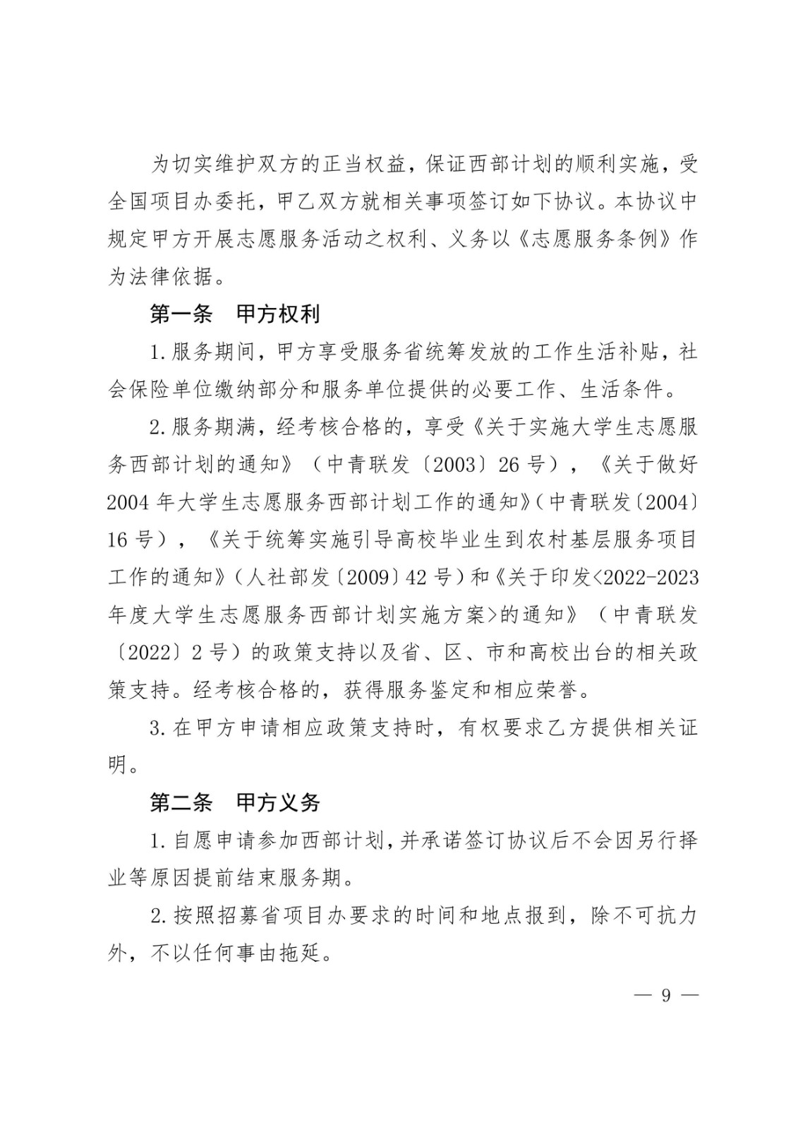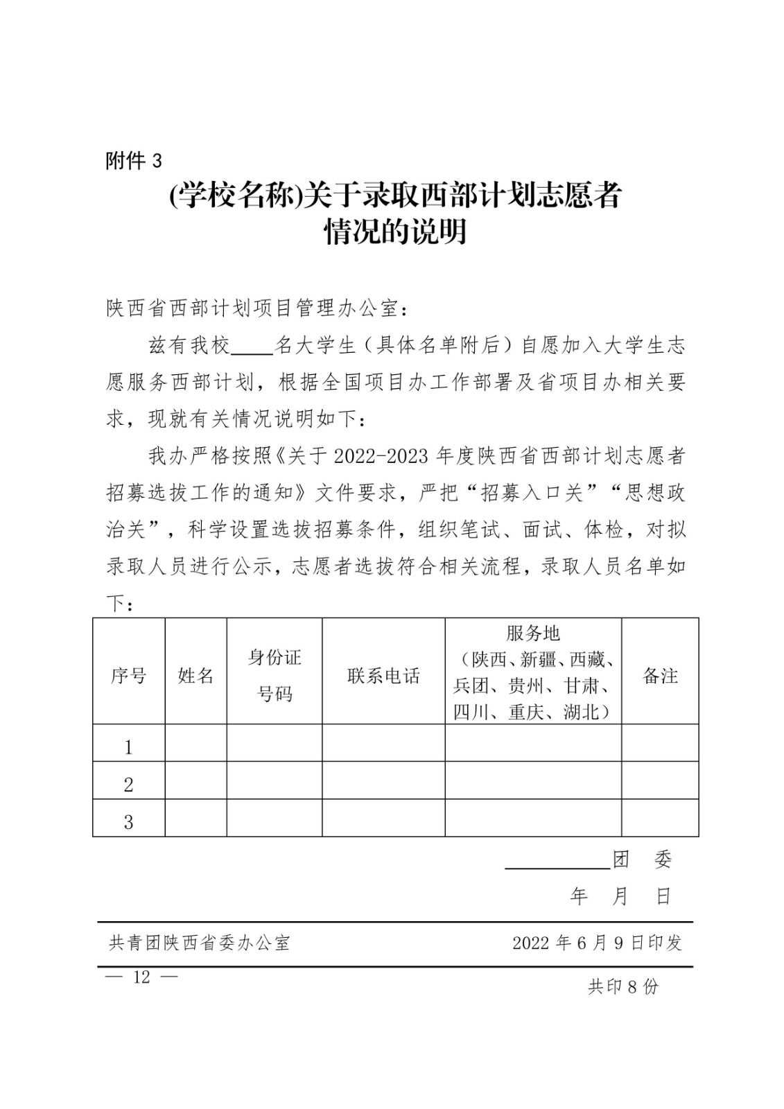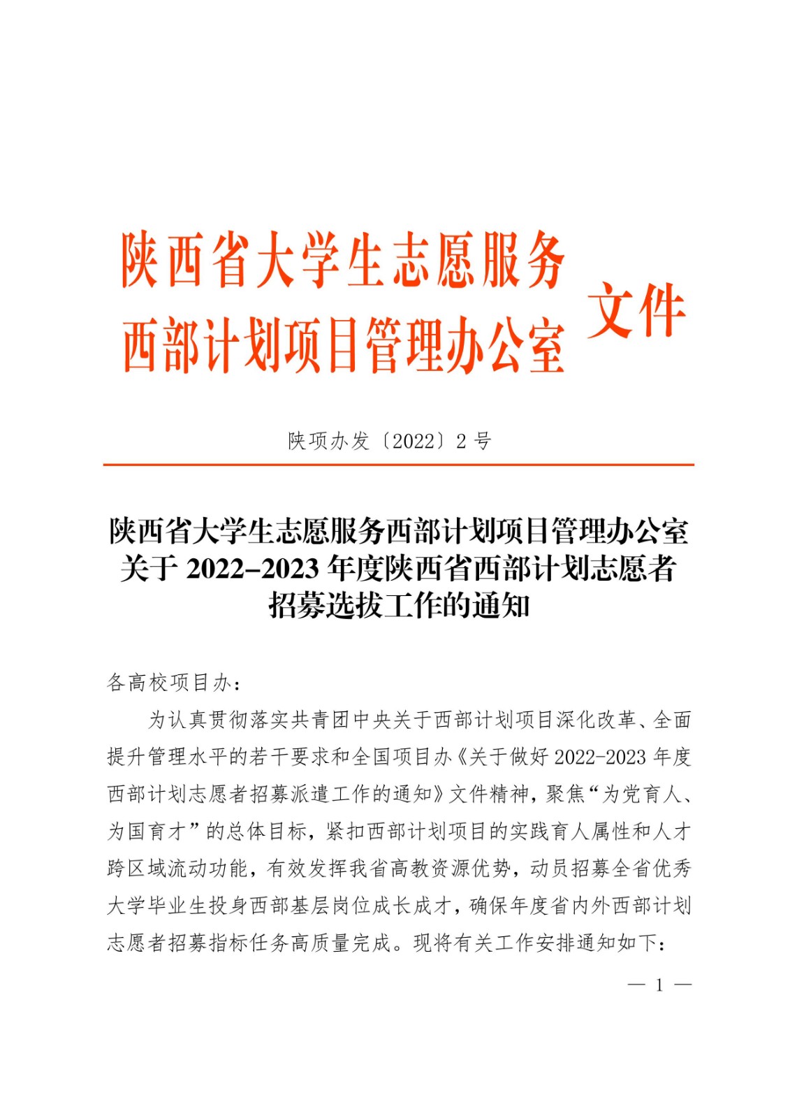 关于2022-2023年度陕西省西部计划志愿者招募选拔工作的通知