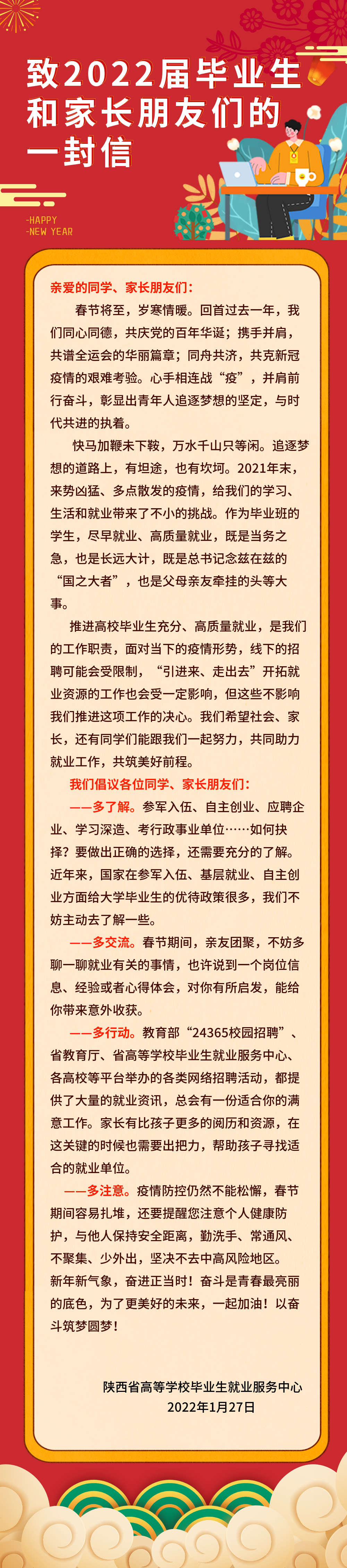 陕西省高等学校毕业生就业服务中心致2022届毕业生和家长朋友们的一封信