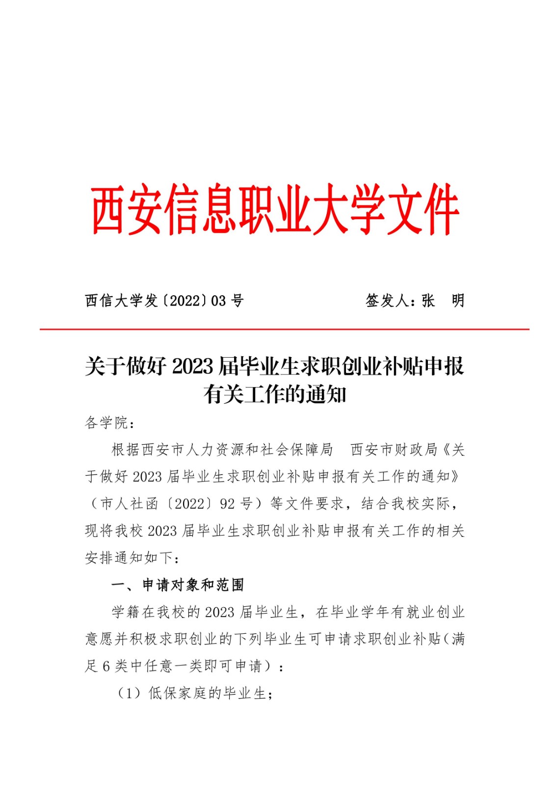 关于做好2023届毕业生求职创业补贴申报有关工作的通知