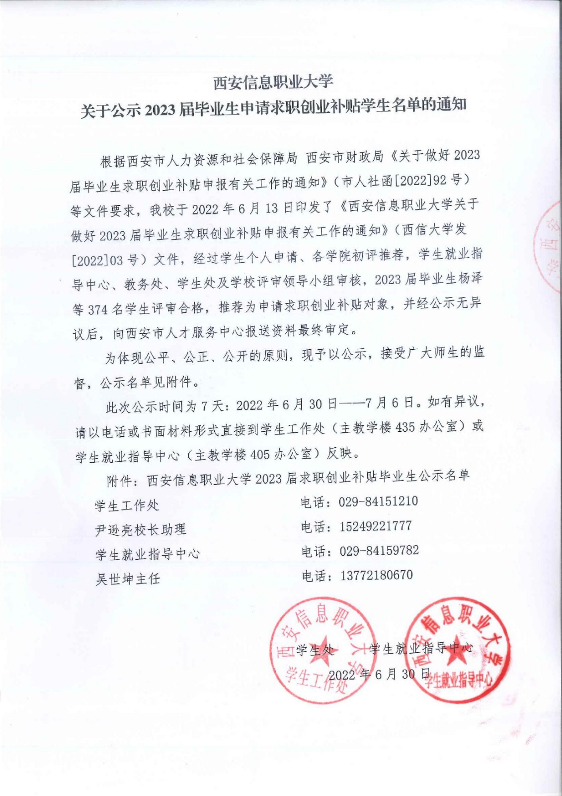 诸侯快讯入口官网关于公示2023届毕业生申请求职创业补贴学生名单的通知
